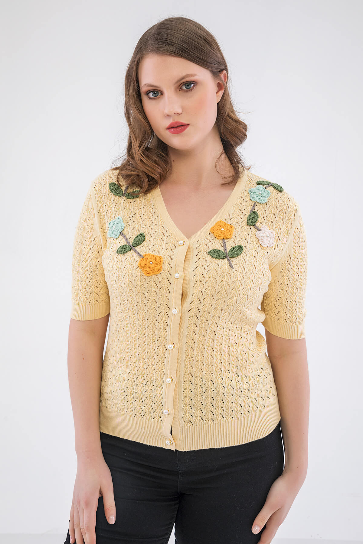 Кардиган с камнями на плечах